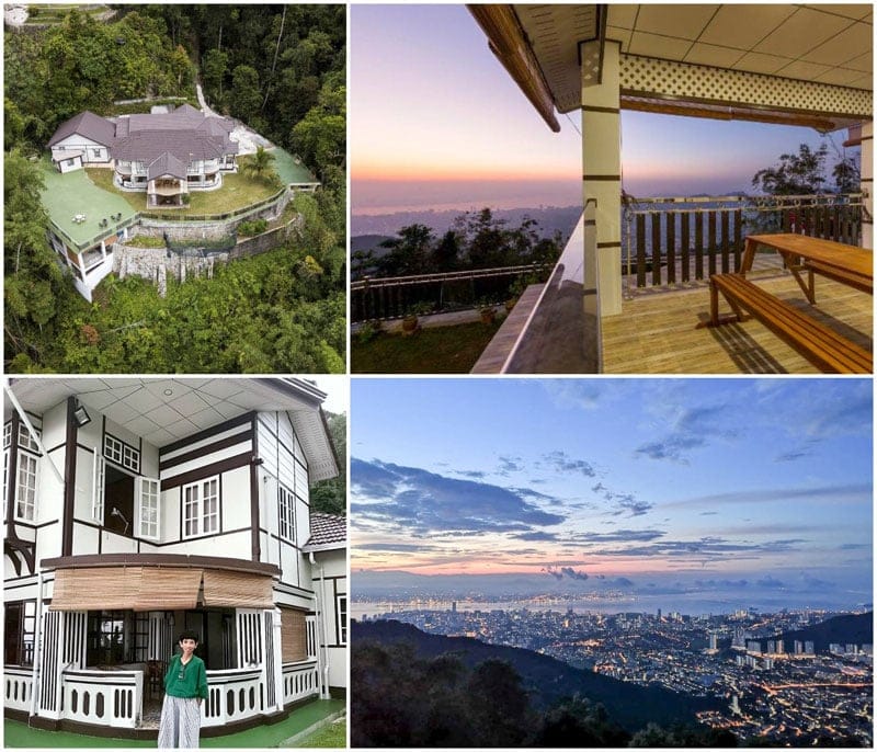 b) A lodge converted from a heritage building on Penang Hill — The Hickory