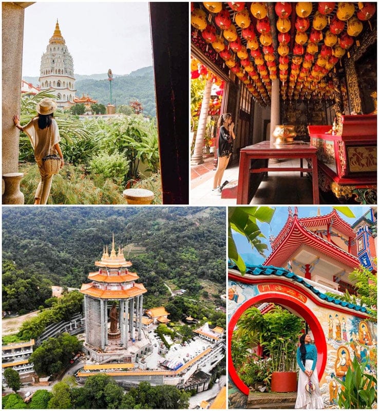 e) A complex Chinese temple built like the forbidden cities of ancient China — Kek Lok Si Temple