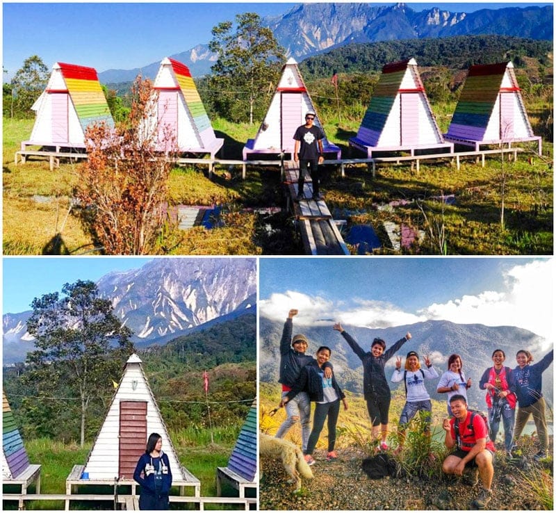 d) Multicoloured wooden huts await you under starry skies — Mt Kinabalu Holiday Camp