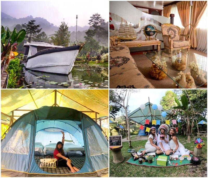 Ideal for large groups such as company trips and team building, you will find ample space at The 7 Lodge, along with colourful amenities. It’s a bicycle-friendly area with a fishing pond so you can catch your own dinner. 😉 It’s quite remote though, so be sure to bring enough food and your own transport. They even have a rabbit farm here!