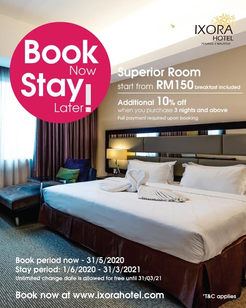 Ixora Hotel Penang – https://www.ixorahotel.com/stay/book-now-stay-later/