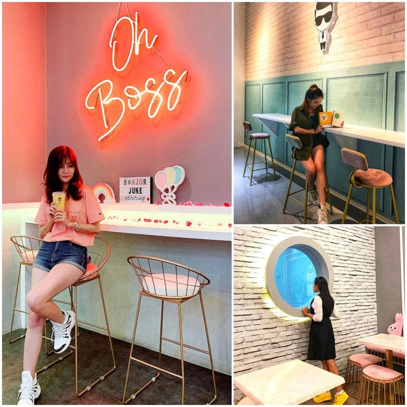 Similar to the Urban Spaces cafe in Seoul, OH! Boss cafe has created a cute, pink camera-ready space (they even have an over-large photo frame for a cool Insta-ception shot!).