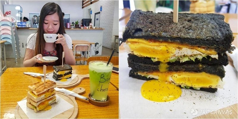 And of course, you can expect a rendition of your school canteen fare… Not. 😉 We wish these were served when we were still in high school! Warm and fresh charcoal-grilled sandwiches that are baked in-house, Crispy Pork Belly sandwiches with oozing egg yolk… Besides, at RM 8.90 (SGD 2.95), this delicious chow is a steal! We ordered their chicken and bacon-and-egg sandwiches, which are delicious (opt for their charcoal toast!)