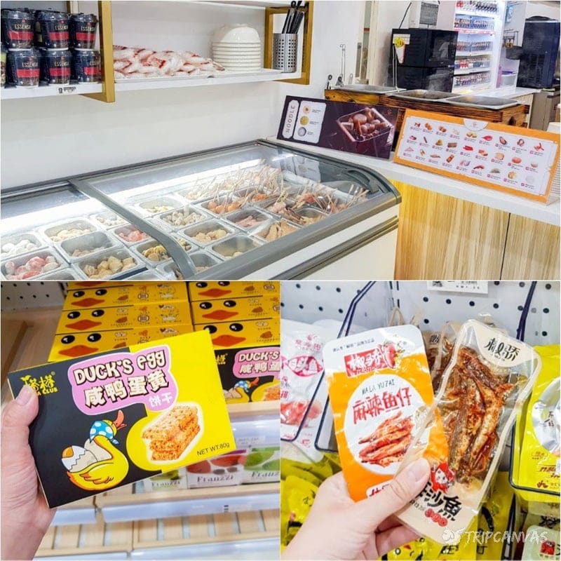 You can also order up oden here like in FamilyMart (and with a wider selection too!) and sit by the aquarium with a hot bowl of fishcake, mussels, tofu, crabsticks and more! Looking for exotic snacks? How about salted duck egg yolk biscuits or spiced anchovies (those you can find in authentic Chinese supermarkets)?