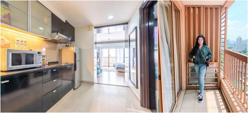 This stunning unit that accommodates up to 6 people and comes with a fully-equipped kitchen too. And what a beautiful marbled bathroom! We were left with no words when we saw how affordable this is – especially considering that you’ll be receiving exclusive hotel hospitality!