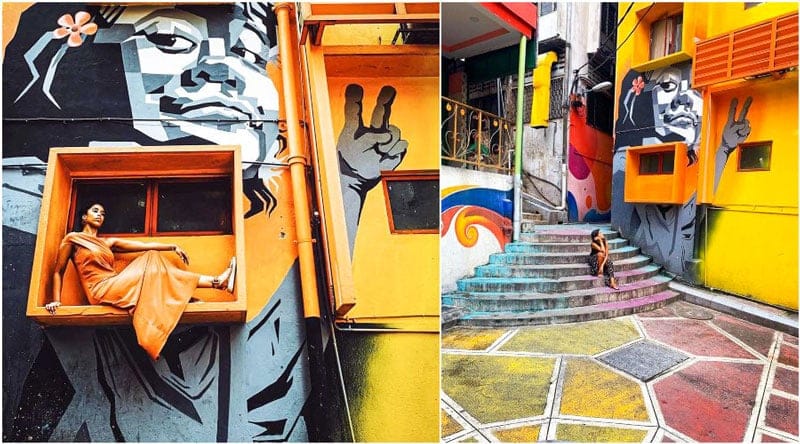 The Art Street in Changkat is a fairly new addition (as at 2018) which brings the whole area to a new level of vibrancy. It goes on for what seems like forever, and even the ground itself is painted bright shades of pink, blue, and green.