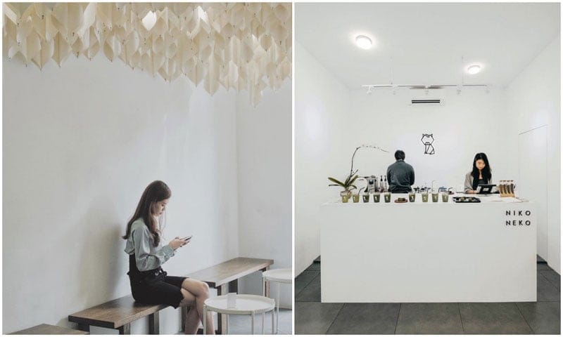 True to its roots, Niko Neko Matcha is an all-white minimalist cafe, and the only decor you’ll see are the gorgeous papier-mâché-type lights hanging from the ceiling! An organic gardening shop which shares the space provides a stark contrast with their bright green plant walls, a perfect background for your matcha drink!