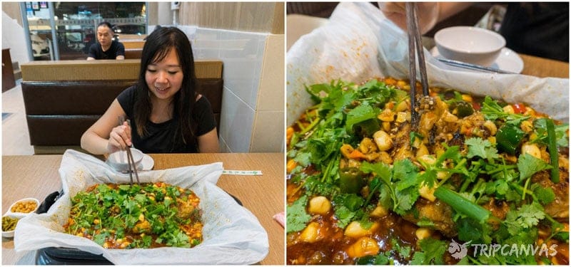 Here, you can take your pick from various freshwater fish, including bullfrogs and crayfish as well. We opted for tilapia and it was absolutely delicious – the fish was fresh and well-marinated with garlic, chilli and lots of spices to give it the tangy and numbing mala taste, and the flesh falls off easily. The last time I had such good spicy grilled fish was in Yunnan. I would have eaten everything including the bones if I could (and I’m not even a huge fan of fish in the first place)!
