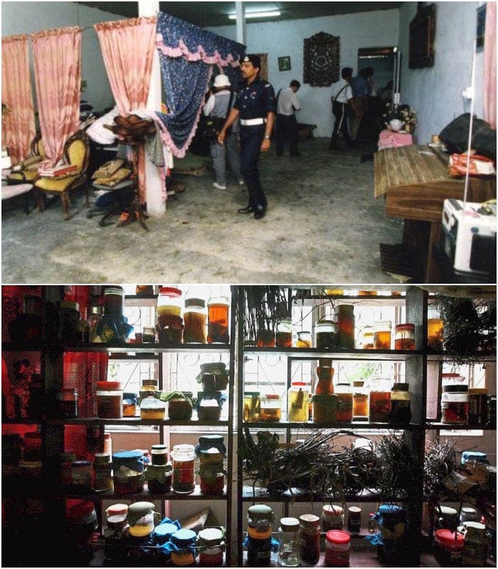 When a cleansing ritual was arranged at her house in Raub, Mazlan was asked to lie down on the floor with his eyes closed while Mona placed flowers on him. Her assistant then chopped his head off using an axe, dismembered and partially skinned his body, which was found in 18 parts and buried in a storeroom.