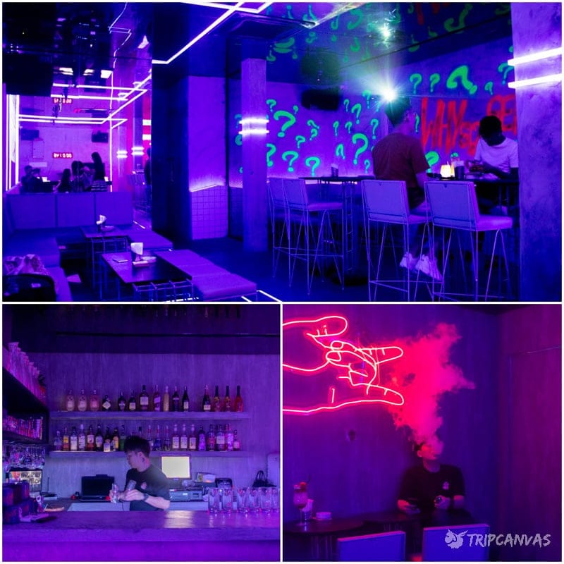 As the night wears on and the shops in the building close down, this is when 1.45am comes to life with throbbing music and the most colourful neon light entrance, but to make it there you’ll have to go through a series of staircases with little to no light at all (I was shitting my pants) before you’re guided by what felt a little too loud of a party music to me (but I am guessing that’s exactly what an 18 to 20-year-old crowd should be looking for).