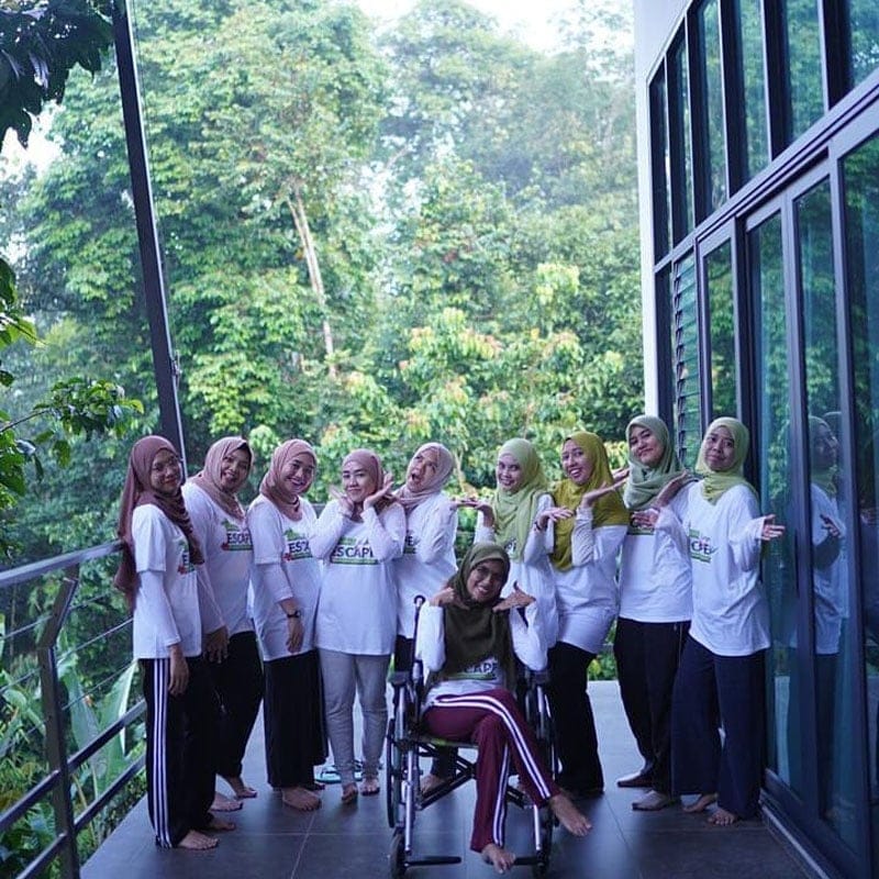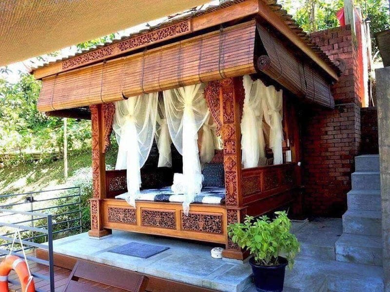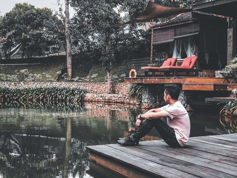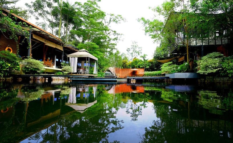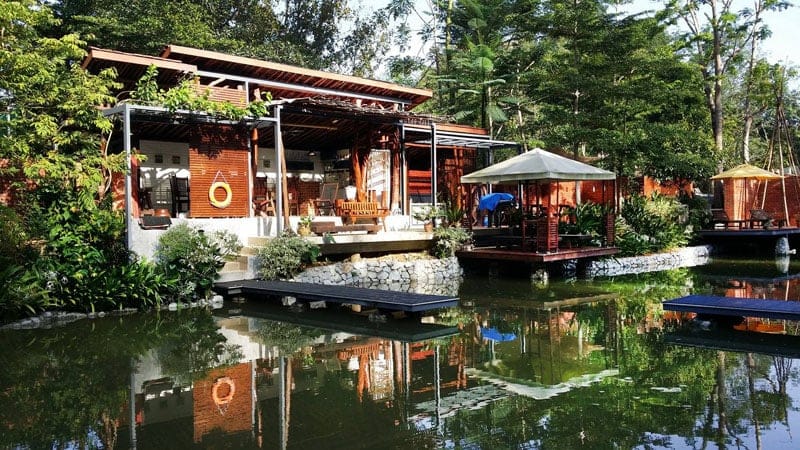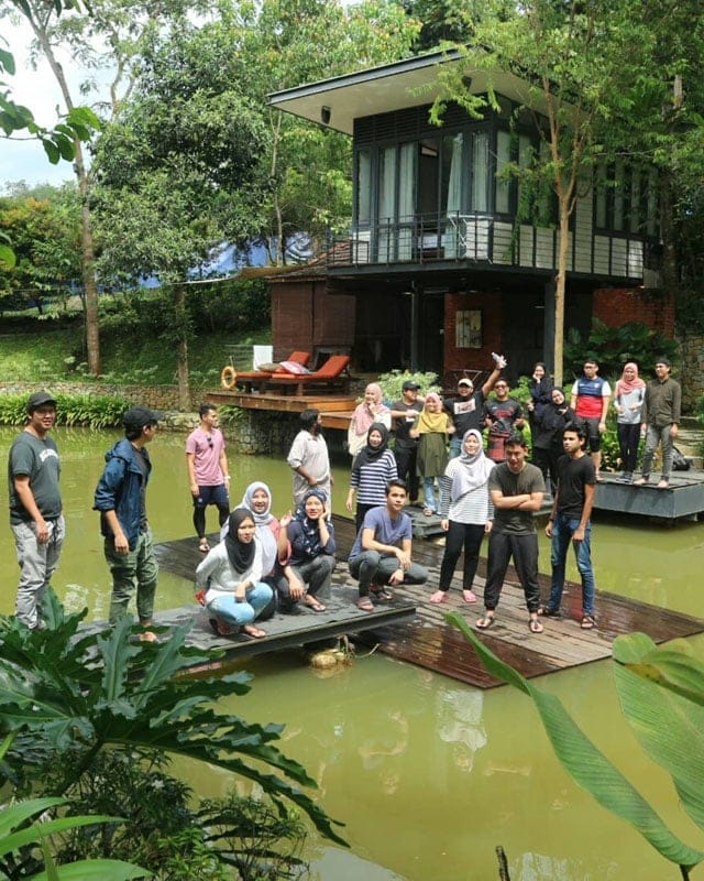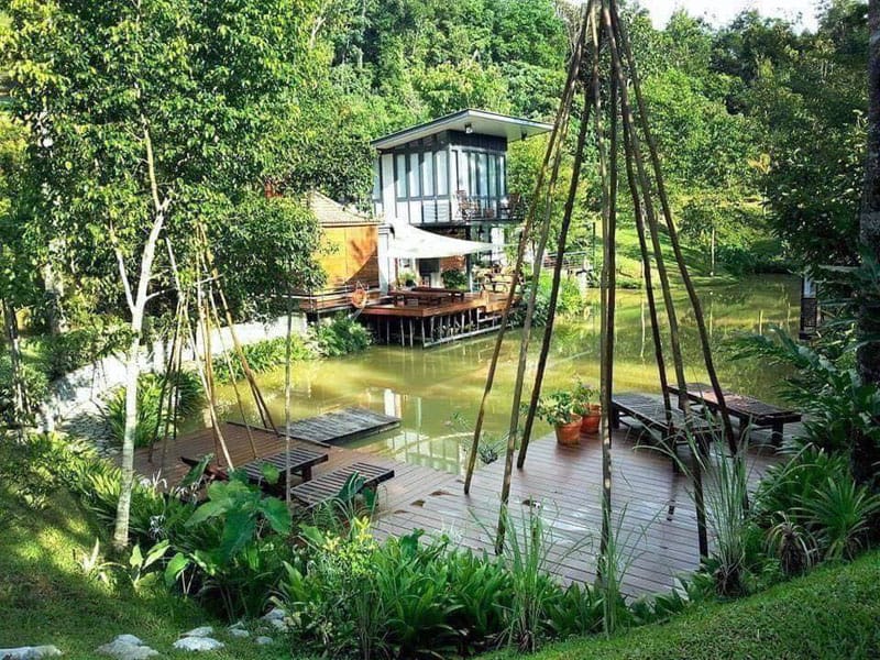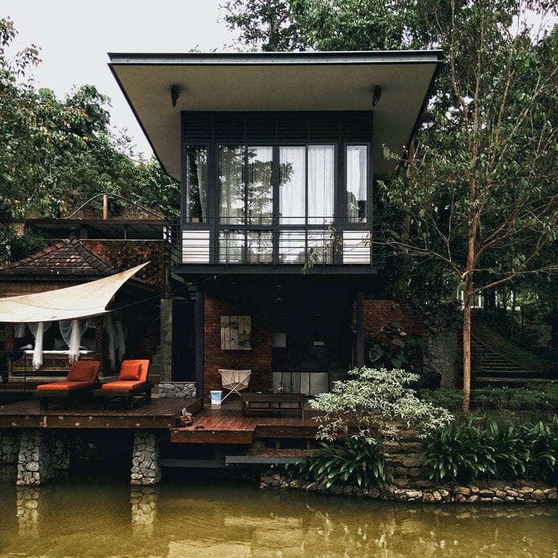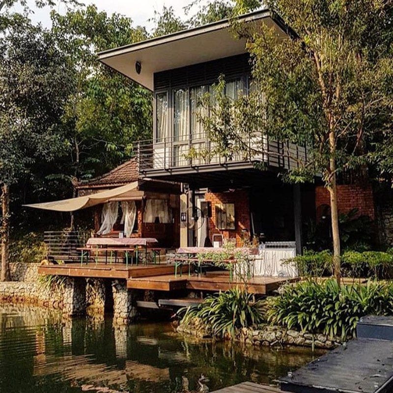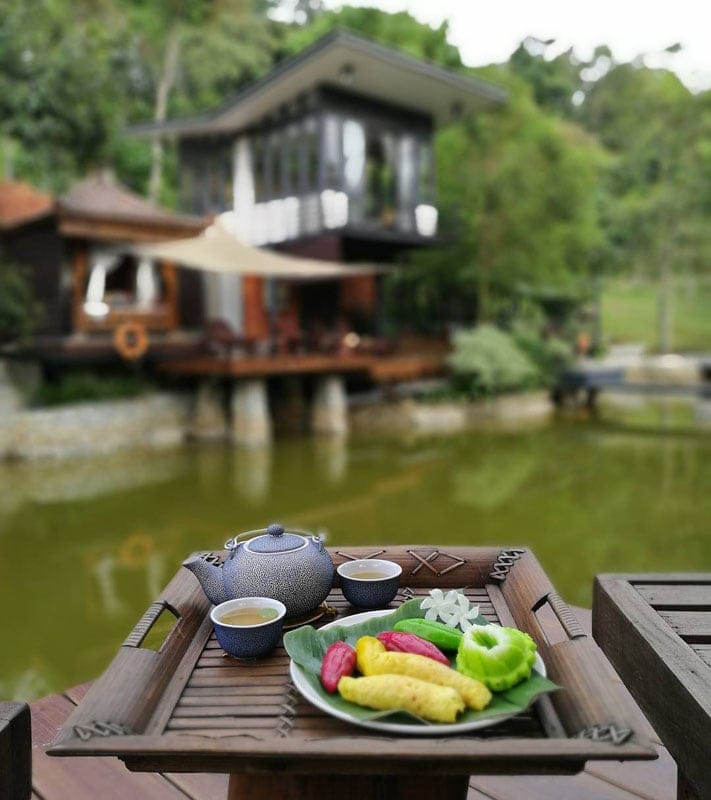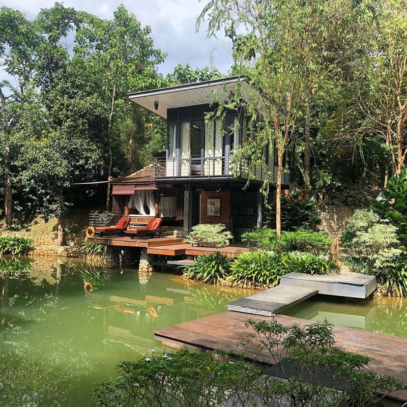 The two retreats are built over a pond and surrounded by tropical fruit trees, with the soothing Sungai Hijau stream flowing in the surroundings.