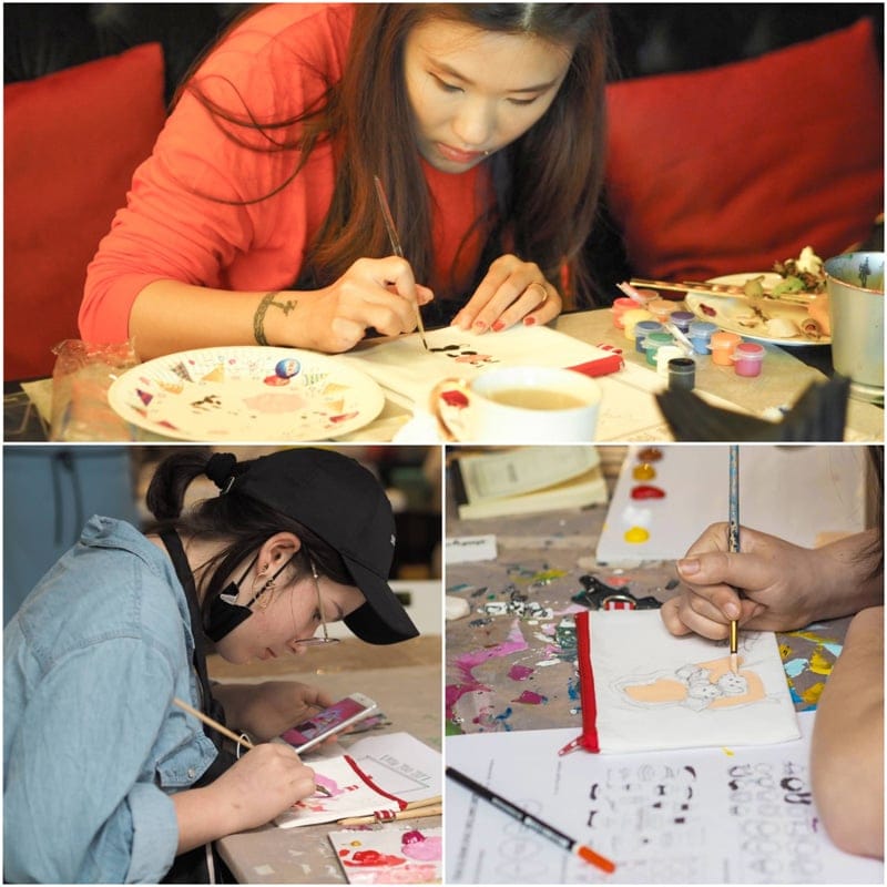 One of her most popular workshops is a customised pouch painting where she guides you on what you wish to paint and even provides paint references for inspiration. A unique two-hour experience where you can go back home with a new skill, a brand new pouch, new friends and plenty of good memories! To note, the paint used is waterproof too so you can always wash your pouch!