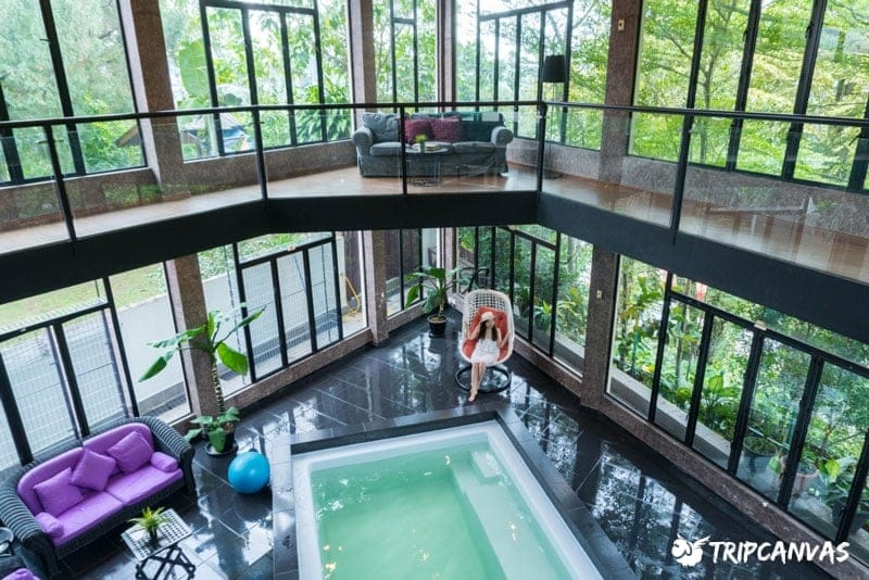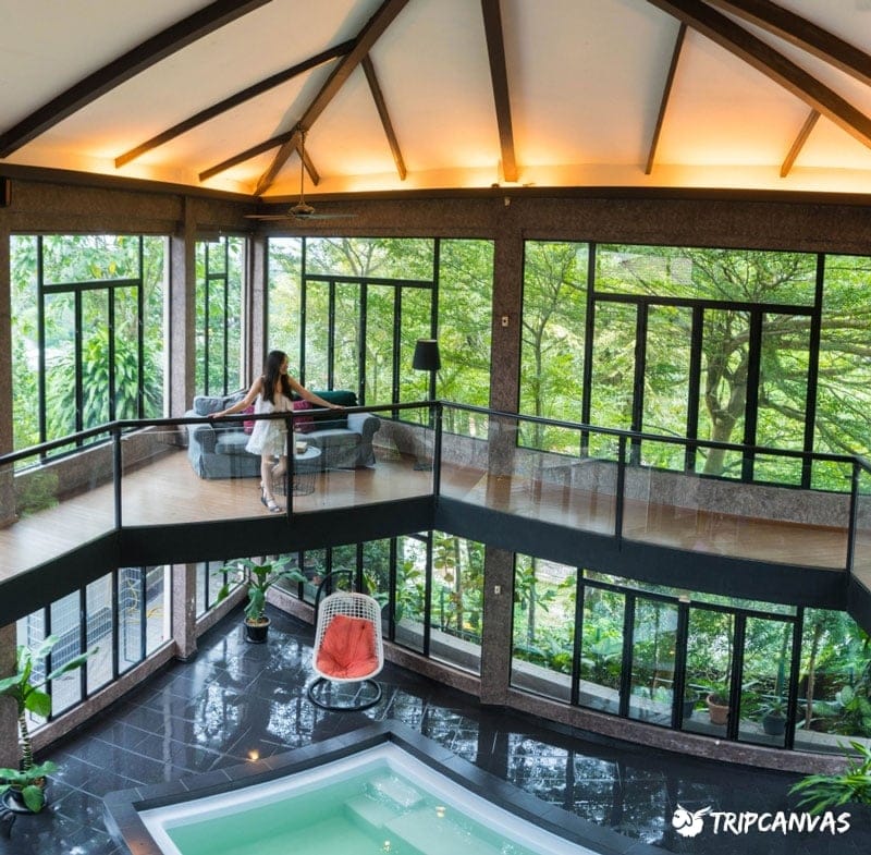 Just 3 minutes’ drive from Zoo Negara, this 5-bedroom glass villa in Ampang accommodates up to 12 of you comfortably, with an indoor pool and over-water hammock! Now you don’t even need to worry if it rains or if you’d get a sunburn!