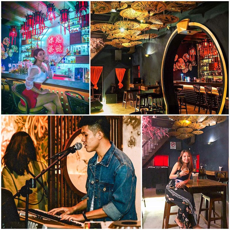 Push open the wooden door and you’ll enter a bar that’s beautifully decorated with neon colours, red lanterns, with a classic oriental-inspired interior with a touch of mystery.
