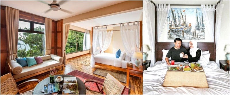 Rates: 1-bedroom villa from RM 1400 per night (for 2 pax) (Approximately S$458); 2-bedroom villa from RM 4000 per night (for 4 pax) (Approximately S$1310); 3-bedroom villa from RM 5400 per night (for 6 pax) (Approximately S$1768)
