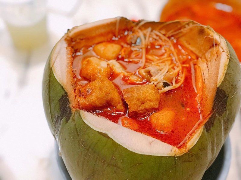 2. 椰子盅:海鲜清汤椰子盅、海鲜咖喱椰子盅……