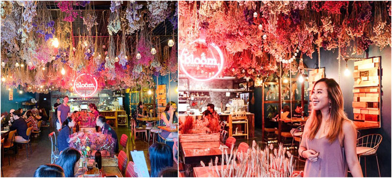 以花卉为主题布置的餐厅绝对是个浪漫的约会场所!除非对花粉敏感,否则,你一定会爱上这里的环境 — 彩色干花布置,还有丝丝花香散布于空气中。