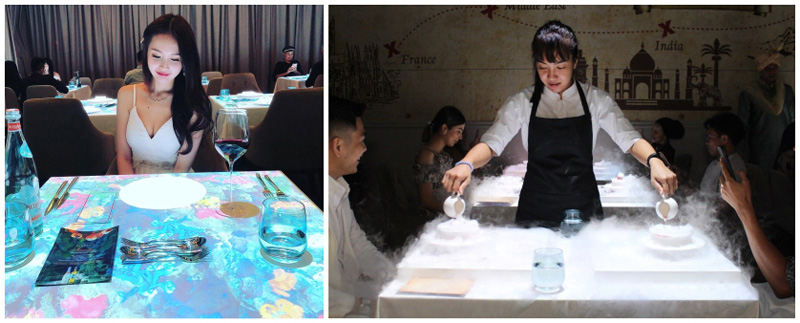 因此,国外开始流行一种全新用餐体验,透过3D投影技术,将烹饪美食制作成动画,投放在纯白色的桌巾上,精彩的程度让食客眼睛都不愿眨一下~其中最有名的就是「小厨师 Le Petit Chef」