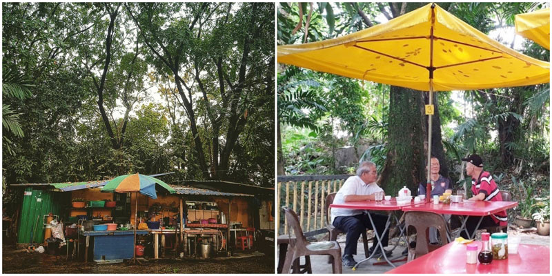 究竟有多隐秘呢?用Grab无法标记目的地,就连司机都怀疑小编走错地方~没事停在大树旁是怎样?但美味就藏在大树林后面~从旁边走道进去,茶室就引入眼帘,还有树下不规则的桌椅及成群的食客。