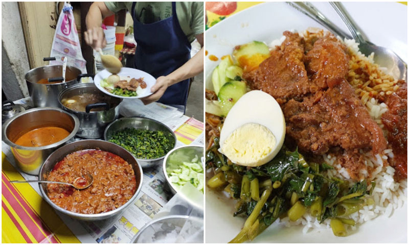 除了梅菜扣肉,还有咖喱羊肉、咖喱鱿鱼、仁当猪肉等等配料供你选择。最让小编印象深刻的是,椰浆饭里竟然有空心菜(kangkung),脆而带甜的空心菜与椰浆饭,蛮配的!