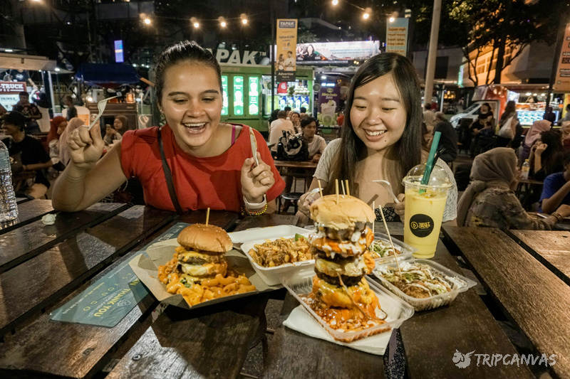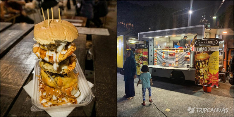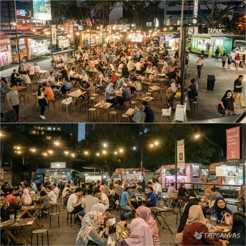 Tapak Urban Street Dining 开始热闹了咯!一直到午夜,这里有超过30辆美食餐车,售卖非常时髦的现代化创意美食如 Giant Indomie、Titantic Burger、香浓芒果奶昔等等!而且,这里有现场乐队,还能看到双峰塔,整个气氛就是非常棒!