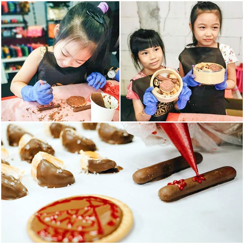 工作人员也会从旁讲解制作要诀,这样你就不会搞砸了~另外,你还能学习如何制作巧克力棒棒糖,及巧克力图案饼干等等~这些成品都能带回家哦!(送给你爱的人,完全诚意满分~)