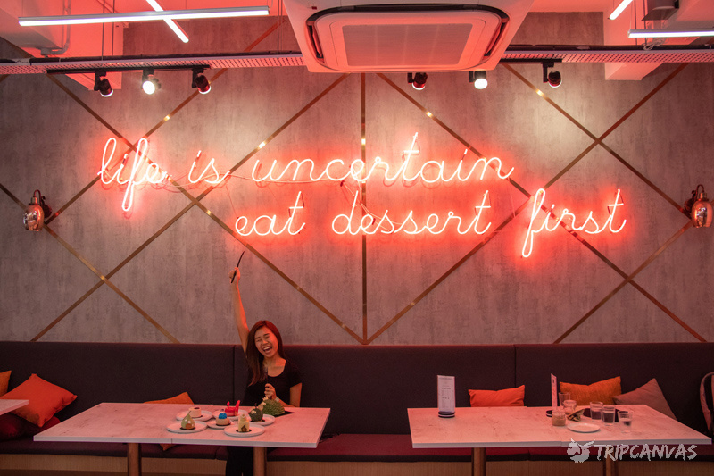 甜品屋整体走的是简约工业风,而店内墙上的独角兽霓虹灯超抢眼,让小编瞬间就少女心喷发~