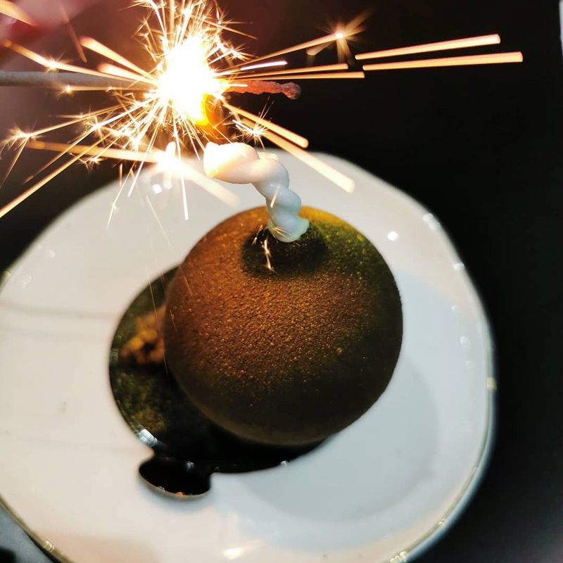 天啊,这里有炸弹?!不是啦~这是炸弹造型的冰淇淋蛋糕—Da Bomb,店家还会很贴心地附上一支仙女棒,让你“点燃”这颗炸弹,烟火熄灭后就能享用咯~冰淇淋采用的是百年巧克力品牌的黑巧克力和马达加斯加香草,质地绵密顺滑,让人一吃就爱上了!