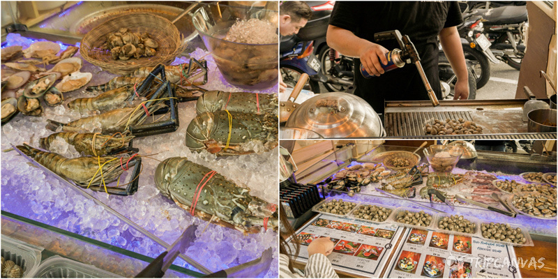 喜欢海鲜吗?快来这里选大虾、龙虾、螃蟹、干贝、鱿鱼、蛤蜊等等,全都在这美食车上现烤的呢!鲜嫩多汁的热腾腾海鲜大餐,准备好了吗?