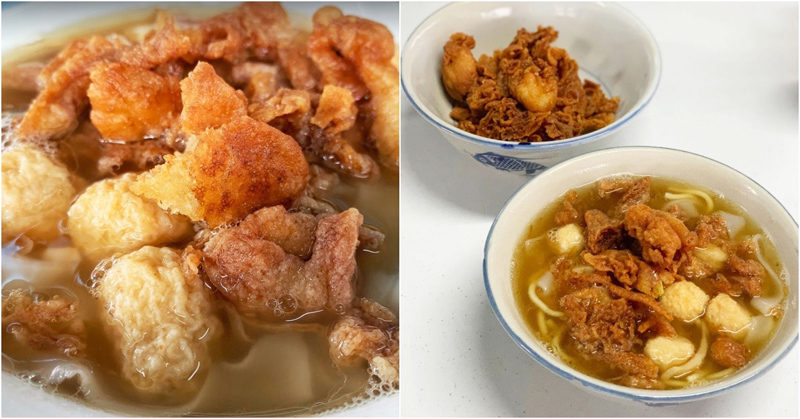 这家在住宅车房营业的家传炸虾面从1946年就开始了!你能选择果条、黄面或是米粉哦!在这里,果条是非常热门的主食,因为它和汤头相衬得太好了! 除了炸虾,也有鱼丸和炸葱头,yummy yummy!
