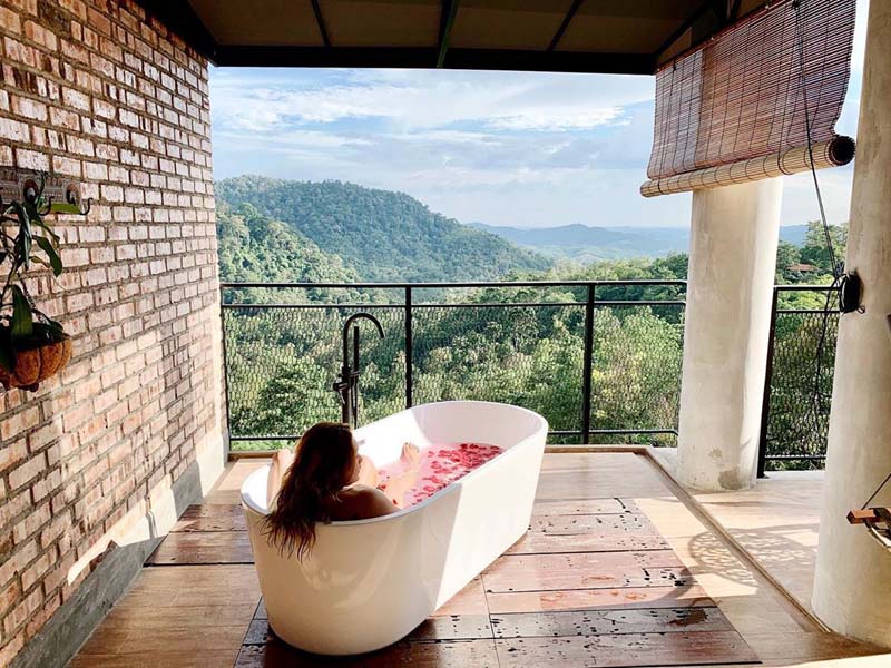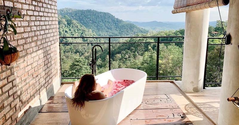 一共有15种房型供你选择 每个房间都自带阳台,让你24小时看美景,早上有薄雾日出、傍晚欣赏日落晚霞、夜晚星空作伴,简直 超级梦幻 有没有 有些房间还有户外泡澡浴缸