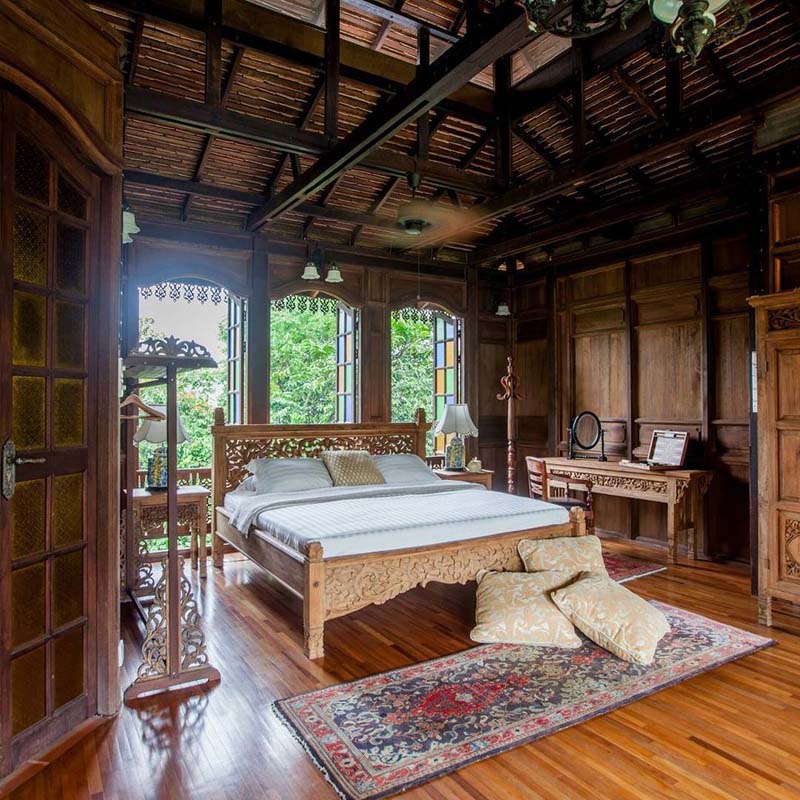 整个民宿面积很大,加上 员工都很亲切 让整个入住体验更温馨放松 别墅的装修有大量木质元素,从床架到橱柜能看到 立体雕刻,营造一种 温暖的氛围