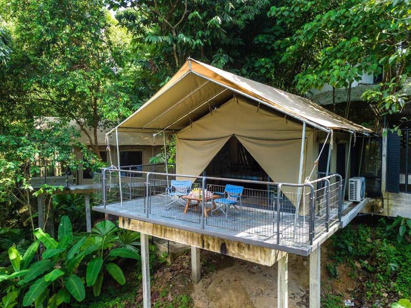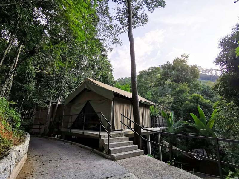 这家民宿距离George Town约50分钟车程,地点偏远 适合想 逃离城市压力,好好放松的你 民宿就隐藏在山谷里,第一眼就被 沿山而建的帐篷 给吸引