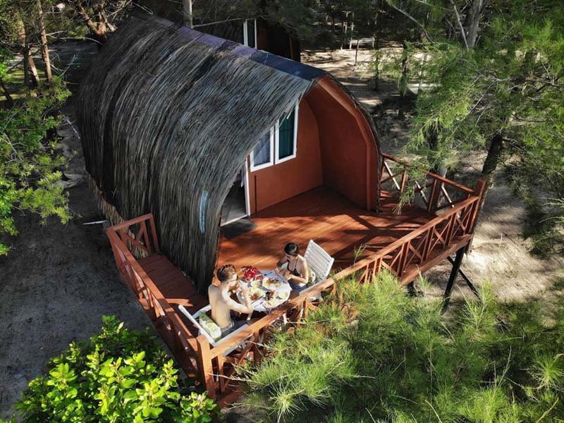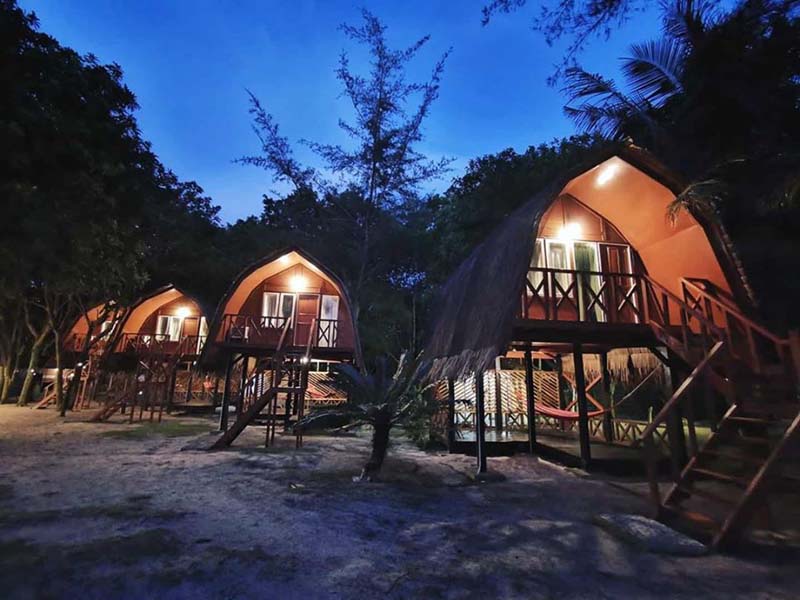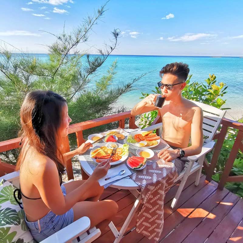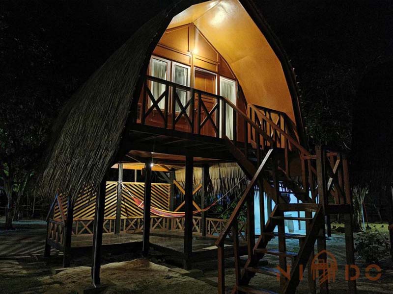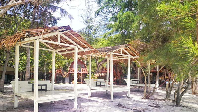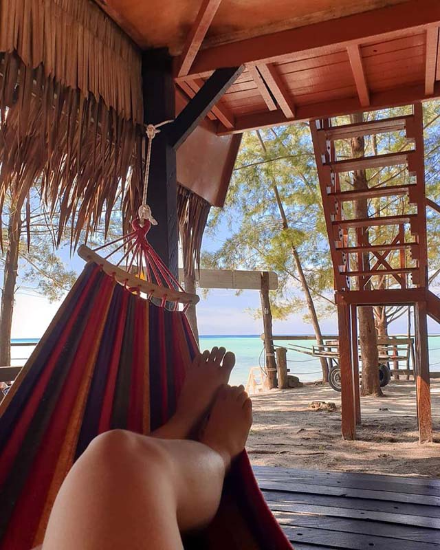 这里最特别的就是 高脚小木屋 房型,外观有点像蜜蜂箱,每一间都配有阳台。每天早晨醒来睁眼就是大海,在阳台吃着早餐之余海风扑面 高脚屋下还有 懒人吊床 哦
