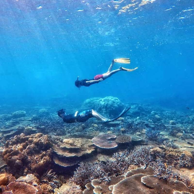 岛上也有许多 浮潜和潜水地点,你还可以向酒店租借设备 另外,你也可以 乘坐独木舟 到大海散步 别忘了入夜之时,到岛上寻找 蓝眼泪