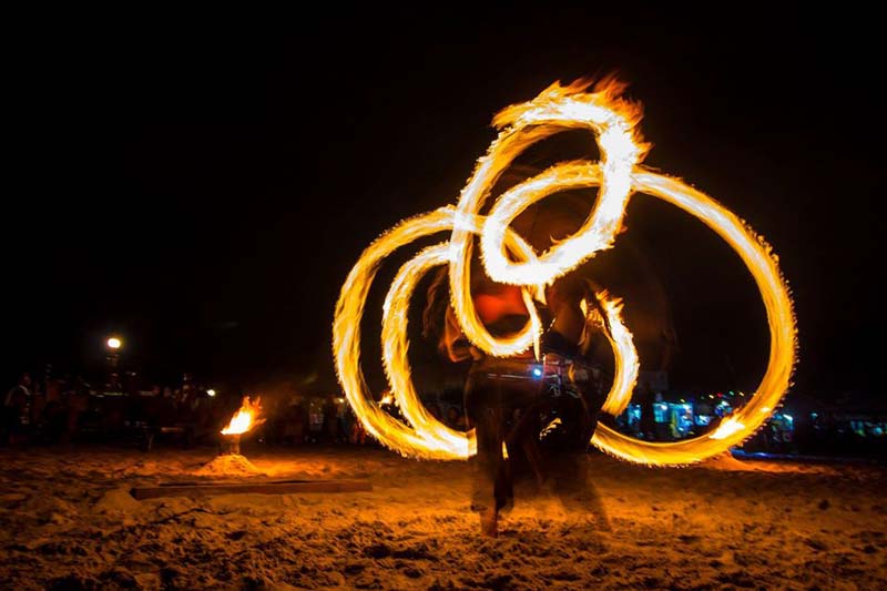 傍晚,天空开始泛红,真的很美。夜幕低垂,就到餐厅里享受烛光晚餐,还能欣赏火舞表演,为你们的夜晚增添惊喜